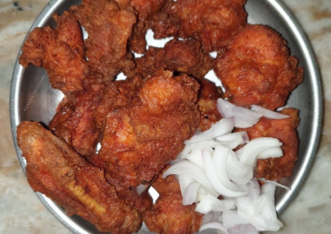 - Remove the fried chicken pieces from oil.Place a tissue paper on a plate and serve the chicken pieces on them.