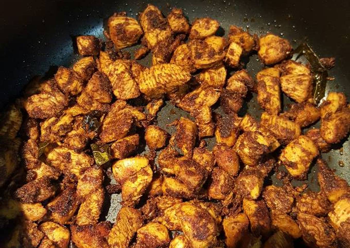 - Once the water is gone and oil separates, fry the chicken till cripsy or however u like