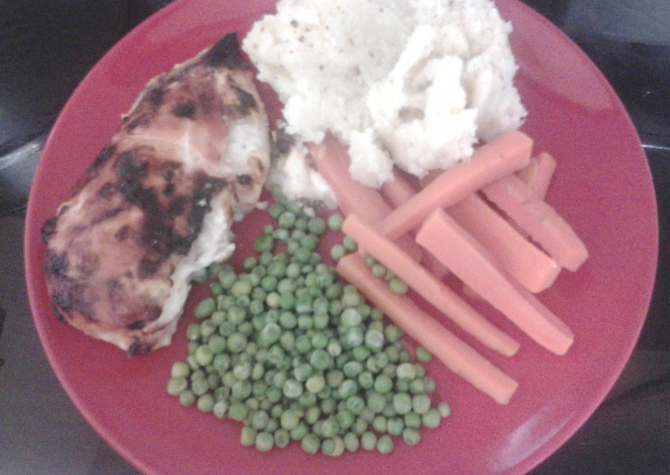 - Slice the Chicken Butterfly like this... better when they are half defrosted if using frozen. Then fill them with the soft cheese and onion mixture, and tie to keep together with string. Put on a baking tray, and bake on 150°C, or gas mark 4 for 20 - 30 mins. Oil spray the top of chicken, or rub a little olive oil on the top. You could also wrap in foil to bake on a higher heat. Uncover for the last 5 minutes. Serve with carrots and sweet peas.